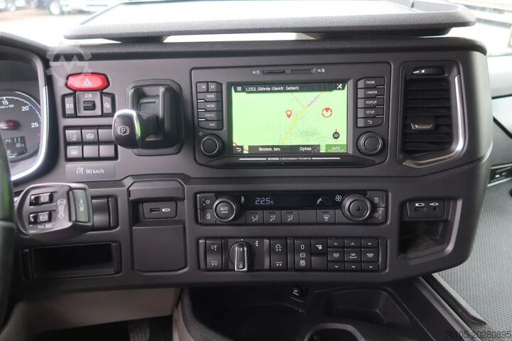 Anzahl der Achsen: 3, Konfiguration: 6x2, Eigengewicht: 9540 kg, Bruttogewicht: 27000 kg, Tankinhalt gesamt: 540 liter, Höhe der Sattelkupplung: 118 cm, Sattelkupplung: Schieber, Anzahl Sperren: 1, Federungstyp: Vollluft, Art der Kabine: Highline, Tempomat, Fahrtenschreiber (Kontrollgerät), Digitaler Tachograph, Klimaanlage, Standheizung, Elektrische Fensterheber, Elektrische Spiegel, Radio/Kassette, Carplay, GPS-Navigation, Farbe: Mehrfarbig, Metallisch, Beheizte Spiegel, Beleuchtungsart: LED-Lampe, Spurhalteassistent, Klimatisierung, Sitzheizung, Bluetooth, Blinkende Lichter, Motorleistung: 368 kW (493 Hp), Kraftstoff: Diesel, Euro: 6, Getriebeart: Opti-cruise, Getriebetyp: Scania, Gänge: 12, Zusatzbremssystem, Retarder Marke: Scania, Servolenkung, ABS, ASR, Starterbatterie, Zentralverriegelung, Sitzaufstellung: 1+1, Sitzbezug: Leder, Sitzverstellung: Manuell
