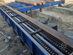 Querbeschicker für Entrindungsmaschine 4 x 5 m, Längsbeschicker 13 m x 90 cm. Kettenbreite 50 cm