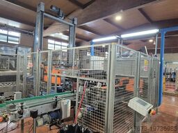 Am Linienanfang werden die leeren Flaschen automatisch über einen Depalettierer zugeführt. Dieses Gerät hebt die Flaschen schonend an und übergibt sie auf den Einlauftisch, wobei die Unversehrtheit der Behälter gewahrt bleibt. Anschließend gelangen die Flaschen zum Triblock-System, in dem die drei Kernoperationen Spülen, Füllen und Verschließen sequenziell erfolgen.