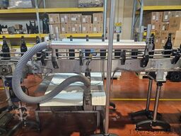 Nachgeschaltet werden die Flaschen zur Etikettierstation transportiert. Die Etikettiermaschine stammt von einem Drittanbieter, ist jedoch elektrisch in die Linie integriert und kann für verschiedene Etikettierarten (Selbstklebe- oder Nassleim-Etikettierung) konfiguriert werden.