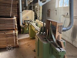 Schroeder-Linie zur Produktion von Massivparkett. Hat nur 1830 Betriebsstunden. Voll funktionsfähig, Arbeitsgeschwindigkeit 30 m/min. Die Linie besteht aus: Beschickung, Hobelmaschine I, Transfer, Hobelmaschine II, Transfer/Wender, Zapfenschneidmaschine. Bearbeitbare Werkstückmaße: Breite 45-100 mm, Stärke: 10-23 mm, Länge: 250-1200 mm.